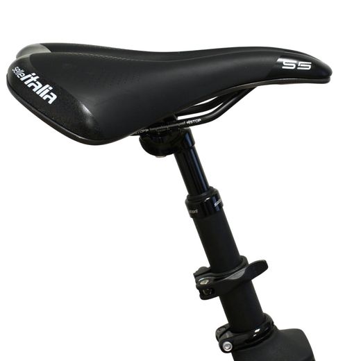 - Sattelstütze: Gefederte Sattelstütze mit Anti-Seitenspiel, 80 mm Federweg