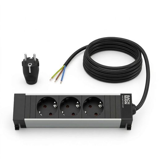 Die Bachmann Power Frame Steckdoseneinheit 916.1192 ist eine hochwertige Einbausteckdosenleiste mit drei Schutzkontaktsteckdosen. Sie wurde speziell für den Einsatz in Büros, Möbeln, Konferenztischen, Küchen oder technischen Installationen entwickelt und überzeugt durch ihr robustes Aluminiumprofil sowie das professionelle GST18-Stecksystem.