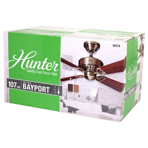 - 1 x Hunter 24174 Bayport Deckenventilator 107 cm Messing Rosenholz / Eiche mittelhell