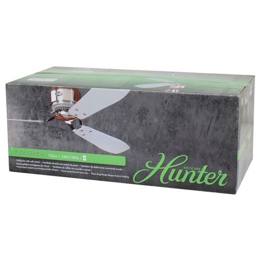 Hunter 24542 Industrie II Deckenventilator Ventilator Chrom Grau Teak 132 cm