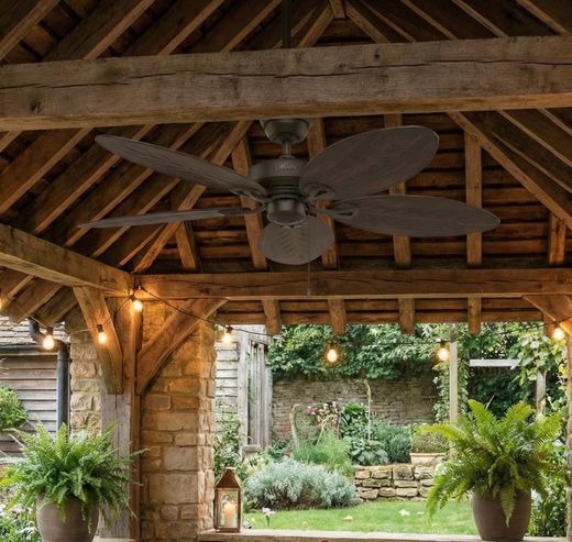 Der Hunter Bayview ist ein echter Blickfang, der sofort Urlaubsstimmung verbreitet. Sein markantestes Merkmal sind die flachen, palmenblattähnlichen Flügel, die ihm einen entspannten, maritimen Look verleihen. Er ist speziell für den Einsatz in feuchten Umgebungen konzipiert.