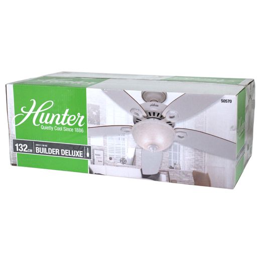 • 1 x Hunter 50570 Builder Deluxe Deckenventilator Beleuchtung Zugkette 132 cm Weiß