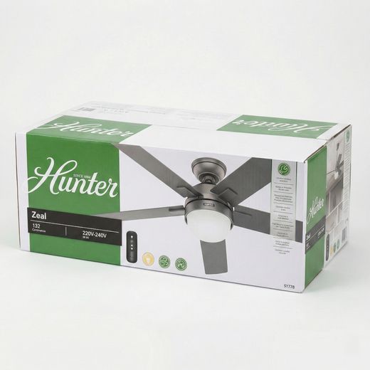 - 1 x Hunter 51778 Zeal Deckenventilator Silber mit Beleuchtung & Fernbedienung 132 cm