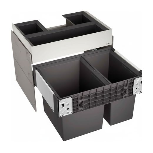 Das Blanco Select II 60/2 Orga Abfallsystem ist eine praktische und platzsparende Lösung für die saubere Mülltrennung im Küchenschrank. Es wird an Türfront und Seitenwand montiert und passt ideal in Unterschränke ab 60 cm. Mit einem Gesamtvolumen von 49 Litern (19 l + 30 l) bietet es ausreichend Kapazität für den Alltag. Hochwertige Materialien aus Kunststoff und Aluminium sowie der Selbsteinzug sorgen für langlebige Funktion, leises Schließen und hohen Bedienkomfort.