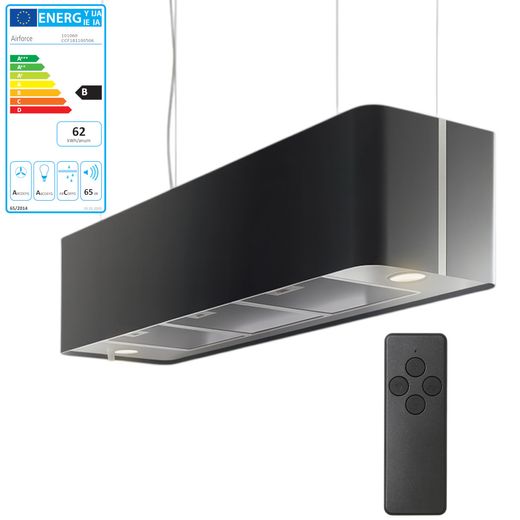 • 1 x Airforce F181 Aria XXL Inselhaube Umluft Fernbedienung Schwarz 100 x 35 cm
