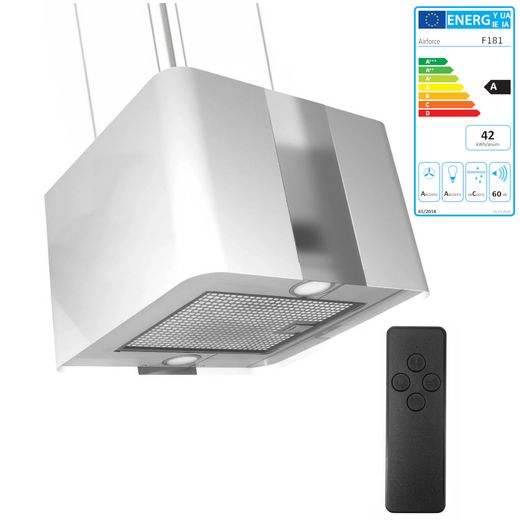 Airforce F181 Inselhaube Umlufthaube Fernbedienung Weiß Edelstahl poliert 45 cm