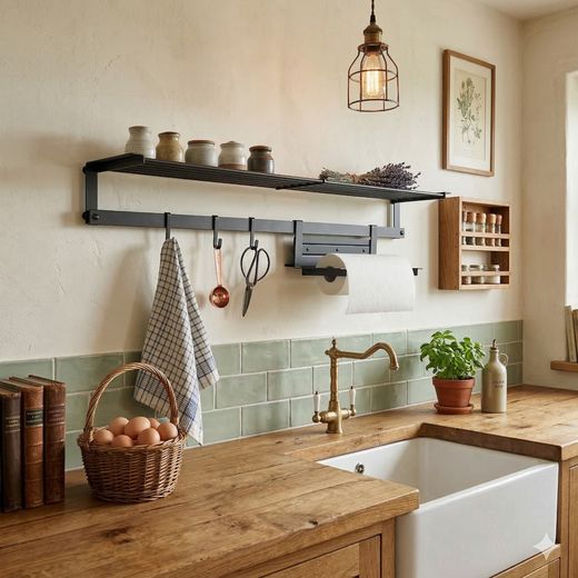 Der HKT Landhaus Papierrollenhalter B 350 in Eisenoptik ist ein praktischer Halter für Küchenpapierrollen. Er wird einfach in ein Küchen-Relingsystem eingehängt und überzeugt durch seinen rustikalen Landhaus-Look. Die Breite beträgt ca. 350 mm.