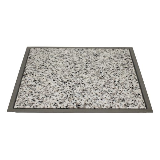 Das Granitfeld Bianco Cristall in der Größe 250 x 250 mm ist eine robuste Einbaulösung für Küchenarbeitsplatten. Die Naturgranitplatte ist in einen rostfreien Edelstahlrahmen eingefasst und kann flächenbündig oder aufliegend montiert werden.