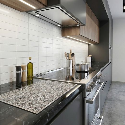 Sie ist hitzebeständig, kratz- und schnittfest sowie feuchtigkeitsresistent und eignet sich ideal als Abstellfläche für heiße Töpfe oder als strapazierfähige Erweiterung neben dem Kochfeld. Die Oberfläche ist pflegeleicht und hygienisch.