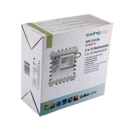 • 1x Axing SPU 510-09 Multischalter 5 in 10 aktiv kaskadierbar Quad-LNB EoC geeignet